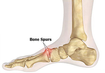 - Foot, especially the heel (heel spurs or calcaneal spurs), big toe and ankle.
